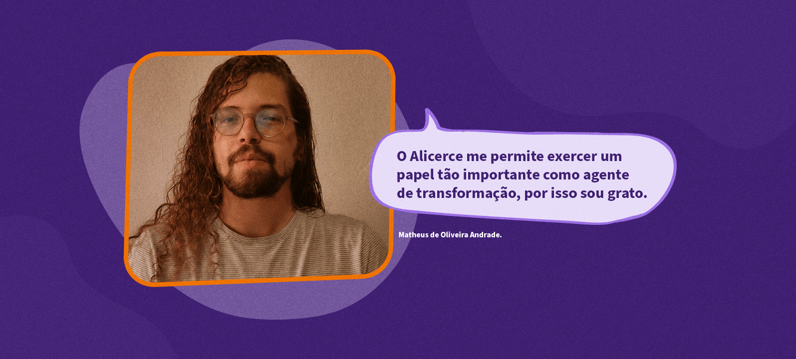 Matheus de Oliveira Andrade tem 26 anos, é formado em Licenciatura em Biologia e atua como Guia no Alicerce há 7 meses. Curiosamente, seu aniversário é no próprio Dia do Professor, um símbolo que só reforça a conexão que ele descobriu ao longo da vida com a educação.